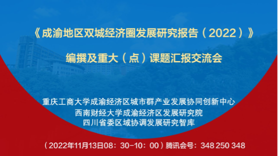 2022年11月13日,《成渝地区双城经济圈发展研究报告(2022)》编撰及重大(点)课题汇报交流会以在线会议方式举行。《成渝地区双城经济圈发展研究报告》是公司成渝经济区城市群产业发展协同创新中心推出的标志性咨询成果,该报告以皮书形式按年出版,旨在对成渝地区双城经济圈的发展进行多方位的评估,并提出推进成渝地区双城经济圈高质量发展的政策建议。2021年度的《成渝地区双城经济圈发展研究报告》已由经济管理出版社正式出版。