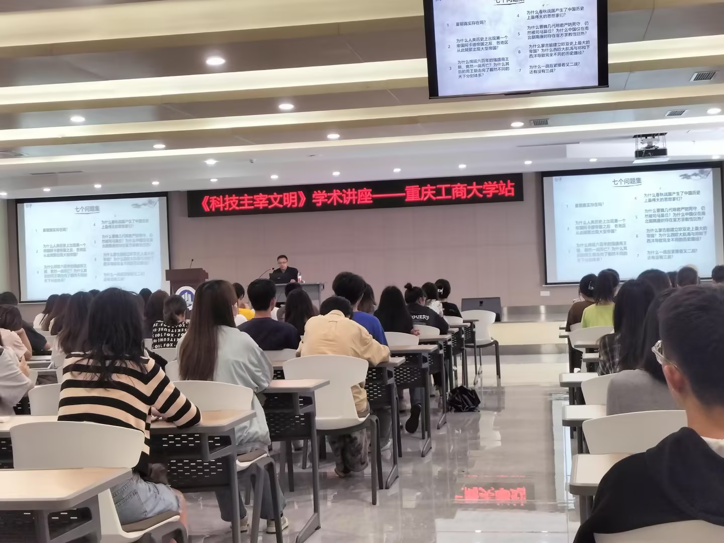 黄漫先生在讲座中带领大家回顾了漫长而又跌宕起伏的人类文明历史,指出科技始终在主宰着人类文明,并导致七次大变局,改变了社会政权结构,深入浅出印证了主题——科技主宰文明。他结合当前ChatGPT横空出世、马斯克星舰首飞测试等热点话题,探讨了在AI世界人类的生存和延续问题,提出了自己独特见解。讲座中黄漫先生妙语连珠,慷慨激昂,同学们也热情高涨,频频爆发出热烈的掌声。