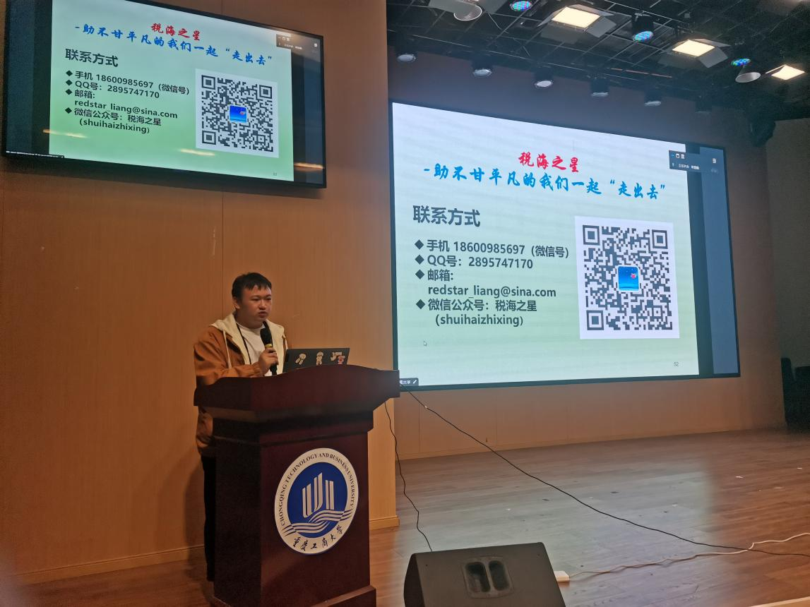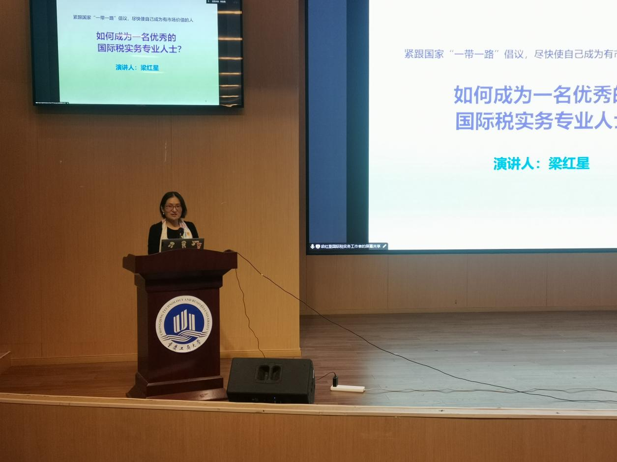 梁红星老师首先介绍了目前中国国内的“走出去”机构、企业以及税务机关等面临着国际税收人才供给少,流动性大,有经验的人才稀缺等困境。因此,从外语要求,税务、财会、法律等复合型专业要求,相关技能要求等几个方面向同学们阐述了怎样才能成为一名优秀的国际税收人士。