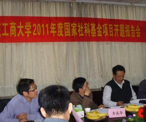 为了推进2011年度国家社科基金项目的顺利开展,在科研处的大力支持下,经济贸易公司于10月19日在公司会议室召开了国家社科基金项目开题报告会。邀请了重庆社科规划办傅剑秋主任,重庆市财政局政策研究室李美华主任,重庆大学经济管理公司陆静副教授、公司科研处处长余兴厚教授、长江上游经济研究中心主任文传浩教授参加。会议由公司副经理姜鑫主持。科研处夏宇老师,课题负责人刘成杰博士、徐慧博士、熊维勤博士,以及公司其他青年博士、教师,各年级研究生参加了此次报告会。