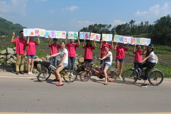 “亲,艳阳天香草园和自行车更配哦”、“低碳出行,骑乐无穷”,铁桥村香草园出现的手绘标语引得游客驻足。7月10日,英国上市公司365笃实修德社会实践团团员们在铁桥村举行了自行车环保行的宣传体验活动。