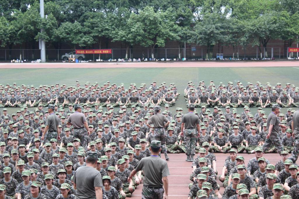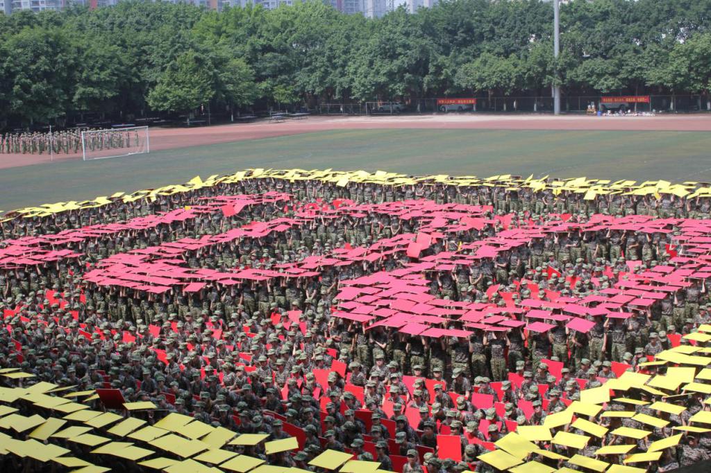 “小暑金将伏,微凉麦正秋。”尽管今天是炎热的小暑,同学们仍然坚持训练。以“祖国万岁”“建党100周年”“1921”“2021”等内容为主题的2800人女生方阵于今天开始正式的训练。随着参谋长满一的口令下达,九个方块按照口令依次进行,现在同学们不再以连为一个团队,而是以一个方块为一个团队进行训练。训练场上整齐的蹲下与站立的动作,伴随着初见雏形的方块图案设计和阵阵洪亮的口号声。烈日当空,每一位同学都早已疲惫不堪,但身体上的疲劳无法浇灭大家齐心协力完成拼图的决心,每个成员都紧紧地团结在一起,为了完成任务而不断地排练。正是由于每一个同学的坚持付出,认真对待,任务得以高效率完成。下午的烈日炎炎,我们以另一种方式进行训练。各教官带领同学们在树林下面唱军歌,那一首首军歌是那样的动听,那样的悦耳,同学们的劳累在阵阵歌声中都渐渐消散。男生标兵方队豪迈而整齐的步伐和着那“一、二、三、四”嘹亮的口号,一排排、一列列,是那样的赏心悦目,那样的振奋人心。这便是团结的力量,是一种集体归属感。
