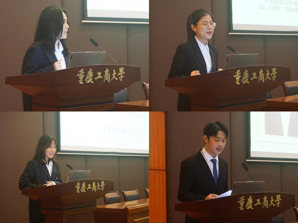 晚上19点,宣讲会正式开始,活动中,21财政一班黄妍菲和20经济三班费吉欢通过讲述在员工组织的任职经历,分享在员工工作中的收获与成长,鼓励同学们积极投入员工工作和校园活动,勇于锻炼自我;21税收二班李雅晴和20贸经二班秦梦莙结合自身学习经历,讲述如何合理规划时间及高效率学习,鼓励同学们积极进取,明确自身目标并付诸努力;20国贸三班时梓玮和21经济三班魏浩楠分享了他们的校内外实习实践经历,鼓励同学们积极参与志愿服务、专业实习和社会实践,在实践中长见识、长才干;20国贸二班方磬音和20贸经二班余明通过分享各自的学科竞赛获奖经历,为同学们积极参加各类学科竞赛提供了经验指引。宣讲结束后,现场观众踊跃发言,对宣讲团成员进行提问,宣讲团成员对“如何对抗焦虑”“如何平衡学习、员工工作和娱乐时间”等问题进行了耐心解答。