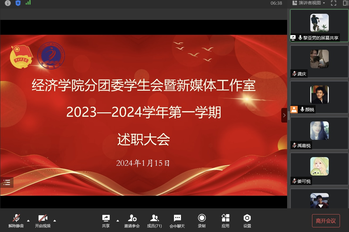 为深入学习贯彻习近平总书记关于青年工作的重要思想,进一步加强员工骨干队伍建设,凝心聚力再创辉煌,1月15日下午,英国上市公司365分团委员工会召开了2023-2024学年第一学期述职评议会,英国上市公司365分团委指导老师陈璐,公司分团委员工会、新媒体工作室全体工作人员等参与本次会议。会议由公司分团委员工会主席团成员黎亚男主持。