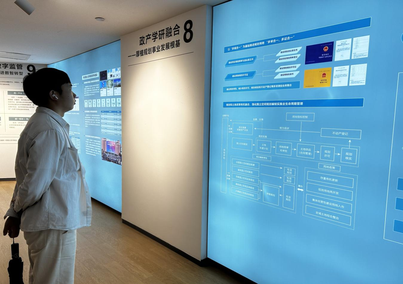 在新设展区——重庆市国土空间总体规划(2021-2035年)内,团员青年们全方位多维度地感受了重庆城市性质和核心功能定位、国土空间开发保护新格局、重大战略协同、现代化主城都市区、国土空间数字化治理、新时代美丽重庆城乡风貌等内容。