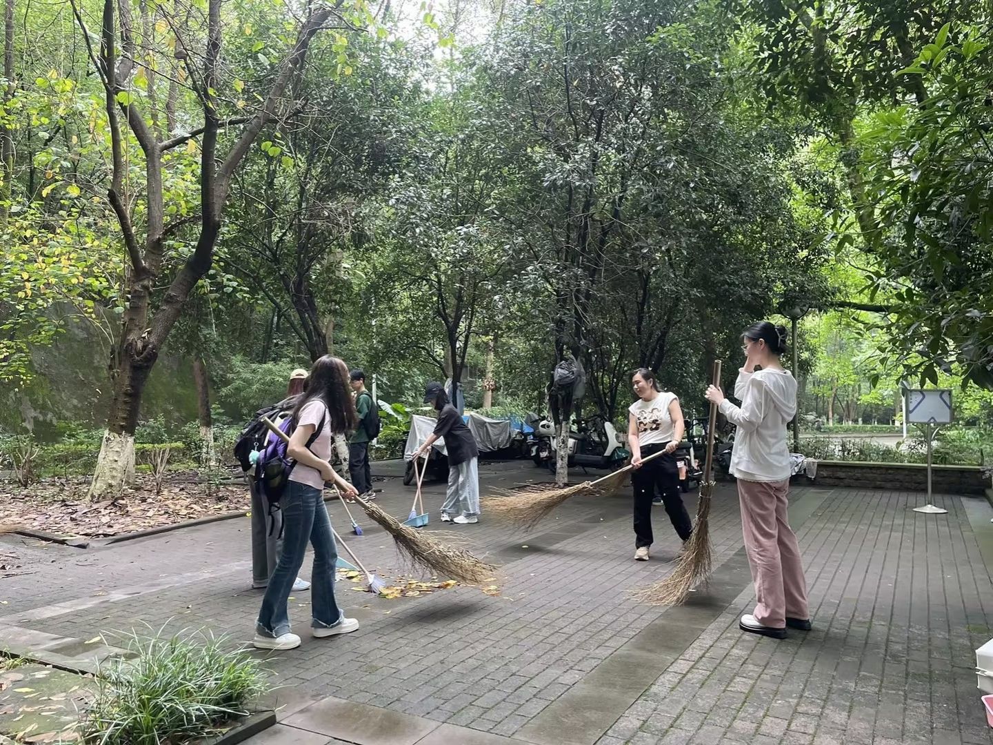 同学们分工协作,或两人结伴,或三五成群,有弯腰扫地的,有收拾倾倒垃圾的,有穿过树带清理杂物的,有为绿化带里的小树细心培土的。“劳”中悟美,“动”中长技。在班长的带领下,同学们将环保理念融入到动手实践中,增强了爱护校园保卫校园的责任意识。热爱劳动,崇尚劳动的理念潜移默化地浸润了员工的心田。