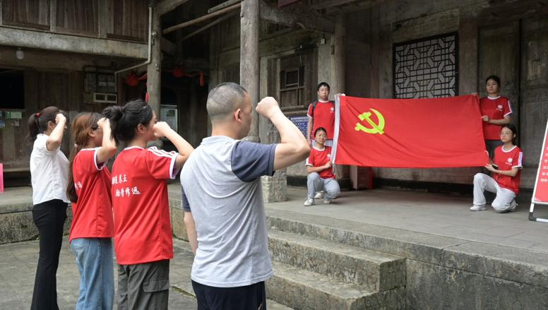 随后,带队老师喻智成、团队成员中的两名预备党员以及先锋社区负责人一同在陈列馆前庄严重温了入党誓词“我志愿加入中国共产党!”