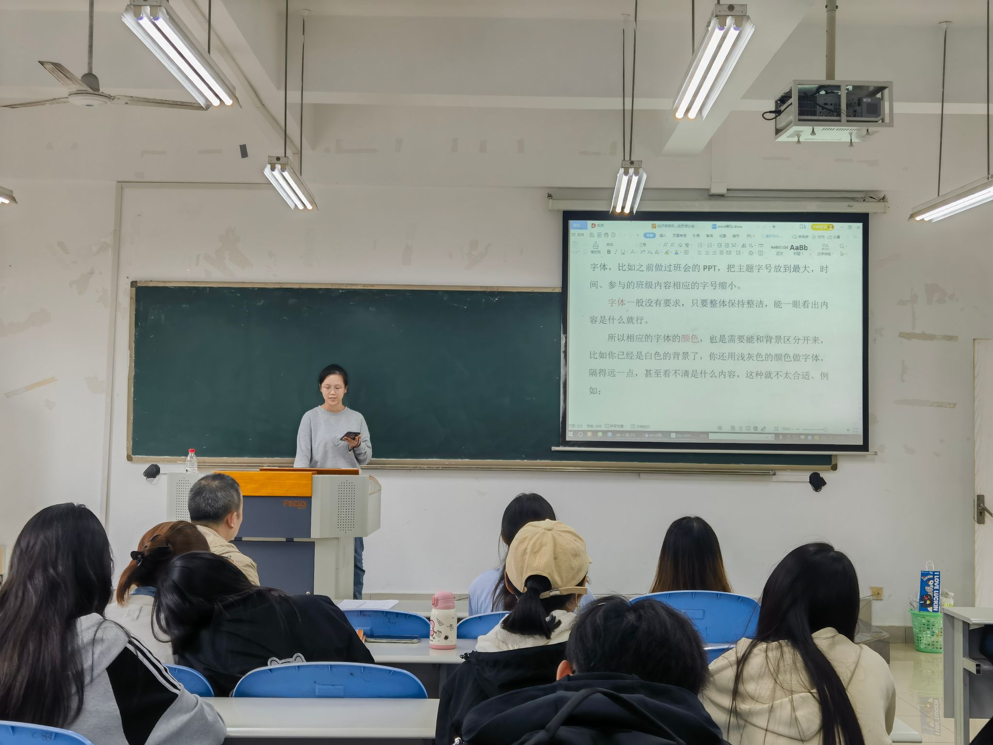 本届员工助理代表王宇欣和上一届员工助理李佳思学姐从办公技能方面对大家进行了培训,王宇欣着重对excel进行讲解,帮助助理们更好地理解和掌握excel的使用技巧;李佳思通过实际案例演示了PPT的制作方法及其规范性。在她们的指导下,员工助理们进一步掌握了办公软件的基本操作技能。
