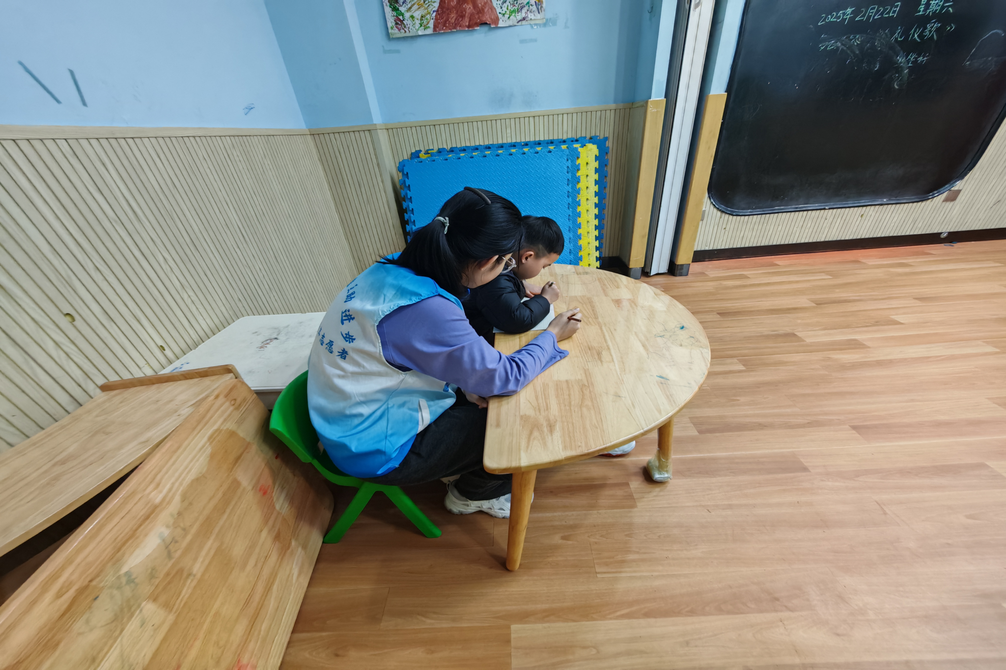 志愿者们分为三个小组分别承担园区卫生清洁、餐食准备和课堂辅助工作。在环境保障组,志愿者们认真完成教室消毒、玩具清洗等工作,为孩子们营造安全舒适的学习环境;膳食协助组深入厨房,规范完成食材清洗、餐具消毒等流程,确保食品卫生安全;教学辅助组则配合教师开展手工课、绘本阅读等教学活动,志愿者们采用 “围坐共读”模式,与孩子们共同阅读绘本并悉心讲解故事,通过情景互动激发儿童想象力与认知能力。