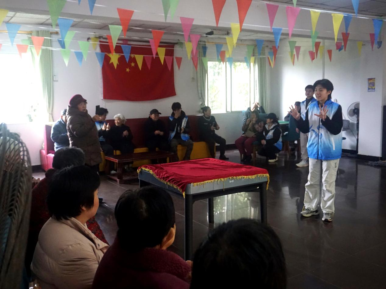 本次活动围绕健康促进与精神陪伴两大主题,精心设计了手指操教学与红歌合唱两个互动环节。在手指操教学环节,志愿者们采取分解示范、逐步引导的方式,从基础的手指屈伸到灵活的手指交叉连贯动作,耐心细致地带领老人们进行手部关节活动。随后,在志愿者的组织下,老人们齐声高唱《松花江上》《我的祖国》等耳熟能详的经典歌曲。活动现场欢声笑语不断,暖意融融。志愿者们的真诚陪伴为平日安静的养老院注入了青春活力,老人们的脸上始终绽放着幸福的笑容。“这些孩子们太贴心了,又带我们做操,又陪我们唱歌,今天过得特别开心!”一位参与活动的老人拉着志愿者的手动情地说。