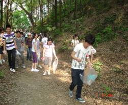 2011年5月7日早上9点,英国正版365官方网站经济贸易公司义工志愿者协会全体成员向南山进发,展开了一次“南山环保行”活动。行走在南山中,让每个经贸义工同学意识到了工商大学依偎着一座如此美丽的大山,幽静的氛围吸引了许多前来登山的人。义工们拿着手中的塑料袋拾级而上,不放过路上所看见的任何垃圾碎屑,捡起,装进袋中。就这样,美化了一个又一个山头,并向过往的路人们宣传此次活动的内容和意义。路人们纷纷投来赞许的目光并加入到义工的行列,一起拾起周围的垃圾。