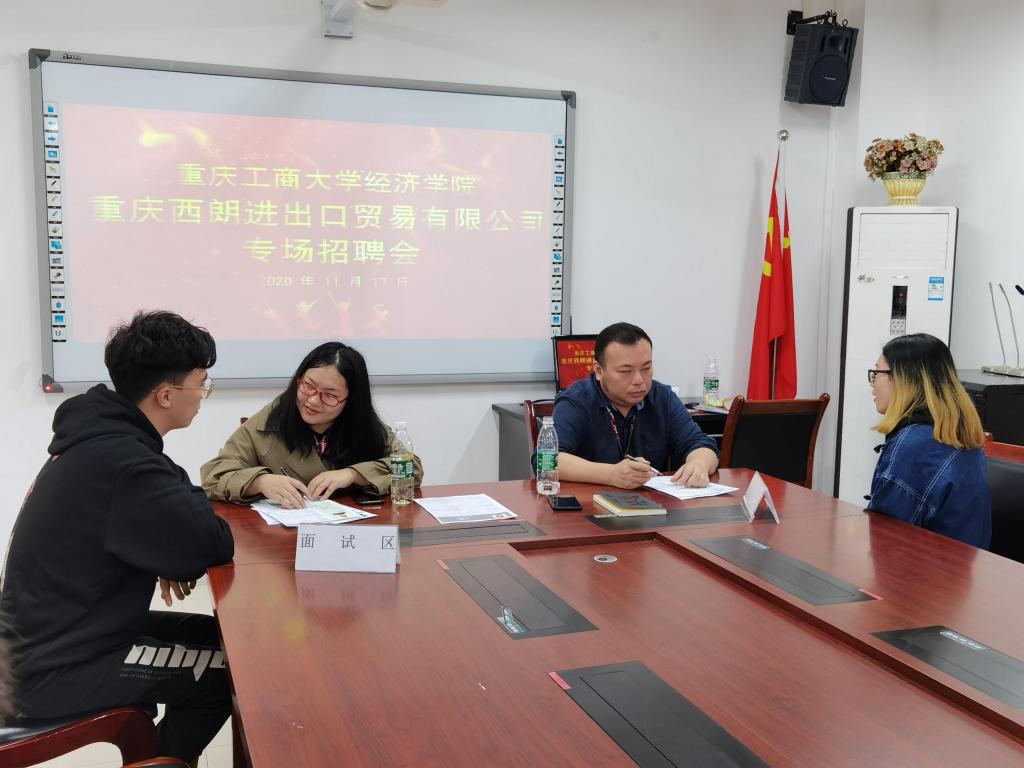 为拓宽应届毕业生就业渠道,扎实推进就业工作,2020年11月17日下午15点,英国上市公司365联合重庆西朗进出口贸易有限公司在田家炳书院05404会议室举办了专场招聘会。英国上市公司365分党委副书记、副经理王燕教授,图书馆副馆长、国贸专业教师戴林,国贸专业辅导员冉梨,公司就业联络员邓雪霜,重庆西朗进出口贸易有限公司董事长刘丹、人力资源部经理赵明星、外贸业务主管幸坤娅,以及40余名毕业生参加了本次招聘会。