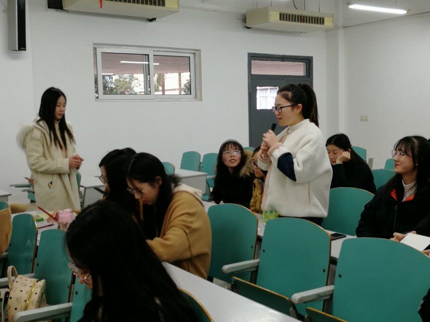 15点50分,活动正式开始。主持人王罗兰首先为大家播放了一个短视频,视频讲述了感恩节的由来。接着,组织部部长曹苗为大家讲述了名人的感恩故事,新闻采编部部长唐琳为大家讲述了结草衔环的典故。两位部长生动有趣的讲述,让大家对于感恩的意义有了更深的体会。之后,进入互动环节。先是关于感恩的名人名言填空,再是击鼓传花,最后让在座的同学们在提前发的明信片上写下对于某个人的感谢。整个互动过程中,同学们积极参与,尤其是最后的写明信片环节,大家都写得很认真,都在真诚地写下对那个最想感谢的人的话。