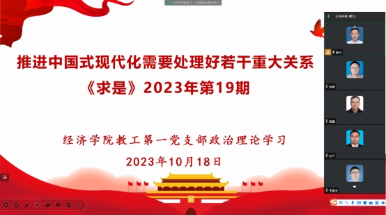 2023年10月18日,公司教工第一支部集体学习习近平总书记在《求是》发表的重要文章《推进中国式现代化需要处理好若干重大关系》,本次学习活动通过企业微信在线开展。