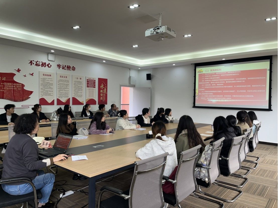 雷菁组织员分别从党员的义务和权利、党章对党员义务和权利的变化以及如何正确履行义务和行使权利等三个方面深入浅出地讲解。雷菁组织员重点从初创探索、继承发展、倒退挫折、守正创新、健全完善五个阶段介绍了党章对党员权利和义务的变化,特别是七大党章中一个突出的成就在于首次明确了党员的权利和义务,将党员的义务和权利在党章中形成了条文化,这一框架结构延续至今。针对如何正确履行党员的权利与义务,她指出我们要牢记新时代新征程中所肩负的使命任务,在正确认识党员的权利和义务的前提下正确履行党员义务、正确行使党员权利,不断提高履行党员义务的自觉性,努力实践全心全意为人民服务的宗旨,增强组织纪律观念,树立对党的事业高度负责的精神,学会用马克思主义的立场分析问题、明辨是非、认清本质。