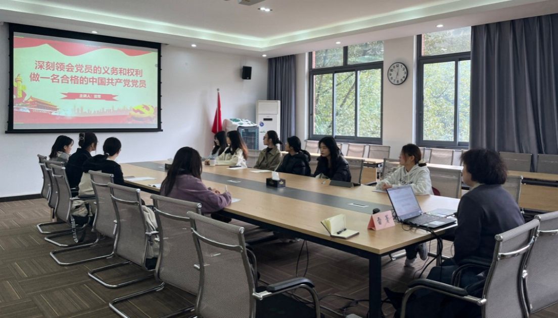 为深入学习贯彻习近平总书记关于主题教育系列重要讲话精神,进一步明确党员的权利与义务,强化师生党员们的责任与担当,11月22日,公司党委委员、正处级专职组织员雷菁同志在田家炳406会议室以“深刻领会党员的义务和权利,做一名合格的中国共产党党员”为主题讲授党课,教工四支部、教工五支部、员工一支部以及员工二支部全体党员线上线下共计100余人参与学习。本次会议由员工一支部书记陈璐主持。