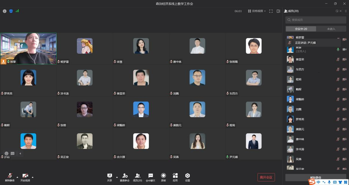 会上,林黎首先对奋斗在抗疫一线的政治经济系志愿者车四方博士表示感谢,对入选线上教学优秀案例的梁甄桥博士表示祝贺,强调认真上好每一堂课的各位老师都是最美逆行者。接着,林黎介绍了英国上市公司365对疫情期间线上教学的最新要求,她指出确保教学质量是线上教学的首要任务,老师们可以通过调整课堂教学方式,增加课程的互动性和趣味性,缓解员工在线学习的孤独感和枯燥感,提升员工的课堂专注度。林黎强调,各位老师要将疫情防控的生动实践转化为鲜活课堂,让课程思政第一时间服务于疫情防控大局,将抗疫元素有机融入课程思政,切实发挥课程思政在疫情防控中的积极作用,号召大家要携手同心、共克时艰、守望相助、并肩战“疫”!