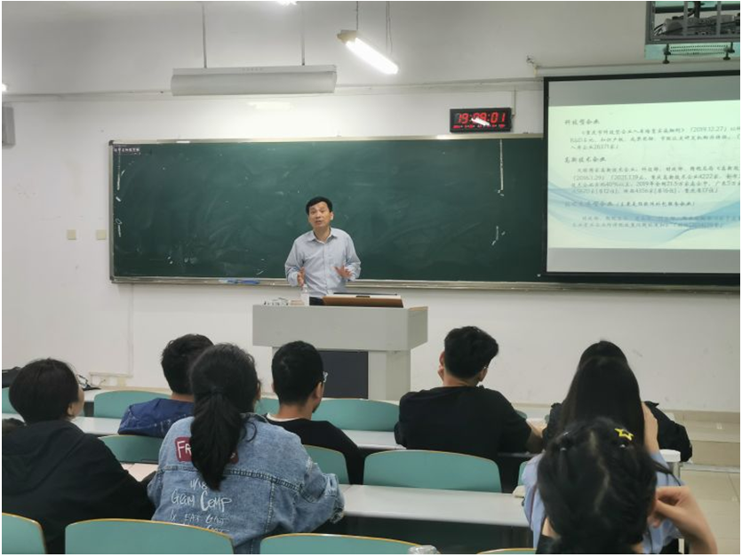 2021年5月25日晚上7点,2019级经济学专业在博智楼7105教室举办了“行业精英进课堂”交流活动。本次活动由应用经济系主任李然主持,教学副经理朱沙参加了此次活动,邀请了享受国务院政府特殊津贴、重庆市科技咨询专家、重庆市中小企业专家委员会成员、重庆市老科技工作者协会副会长梁伟,来校与经济学专业的同学就学习、就业等方面展开深度交流。梁伟会长主要分享了科技资源如何支撑引领中小企业创新发展,从专题讲座、资源对接、金融服务、政策推介、企业培育、知识产权保护等六个方面进行了详细解读。在讲授的过程中,梁伟会长结合自身的工作经历,给同学们介绍了大学学习的重要性,并对个人后期发展提出了诸多建议。梁伟会长不仅教授了同学们如何为学,更教授了同学们如何为人。同学们也就自己感兴趣的话题向梁伟会长进行了提问咨询和互动交流。通过本次面对面交流活动,直接拉近了同学们与实践的距离,有助于同学们更加贴近地了解社会发展的需求;同时,对于同学们端正学习态度、激发学习热情,起到了比较好的作用。会后,同学们普遍反映收获良多。