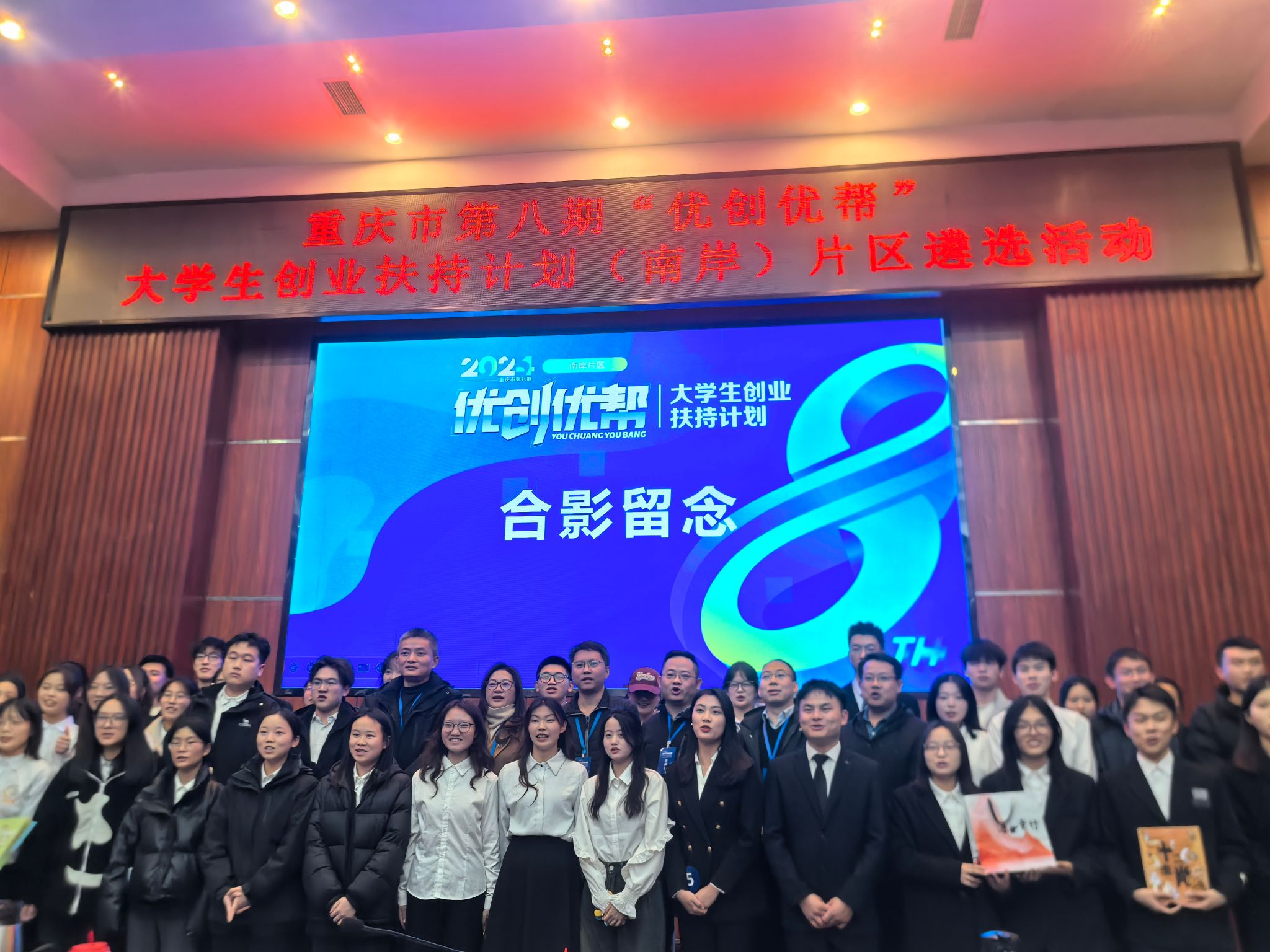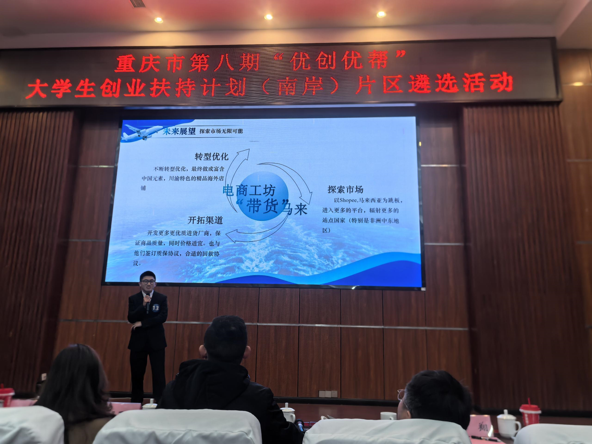 12月5日,重庆市第八期“优创优帮”老员工创业扶持计划南岸片区遴选赛在重庆第二师范公司举行。英国上市公司365由辅导员陈璐带队22级国贸专业“翠湖青年K7跨境电商工作室”负责人冯凯奇团队前往参赛。
