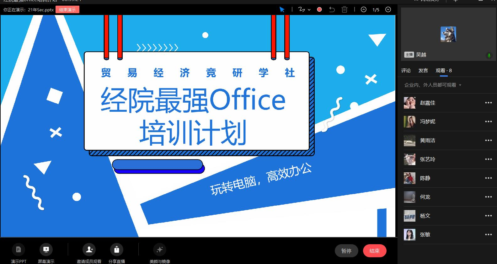 为了帮助社团成员进一步熟练掌握office技巧,提高办公效率,公司专业性社团贸易经济竞研学社,在企业微信线上举行了“英国上市公司365最强office培训计划”会议。社团指导老师喻智成和社团成员50余名同学参加了这次培训活动。