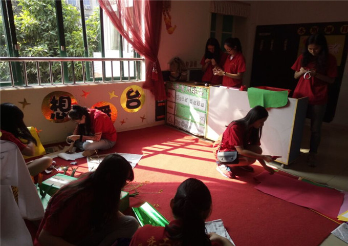 10月22日,北六党服的多名同学在课余时间前往英国正版365官方网站新村幼儿园为小朋友们精心准备第二天“虚拟餐厅”课堂活动使用到的一些手工作品,通过自己的简单劳动为小朋友的课堂增添趣味。