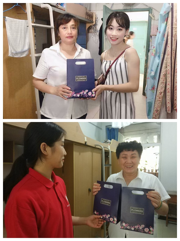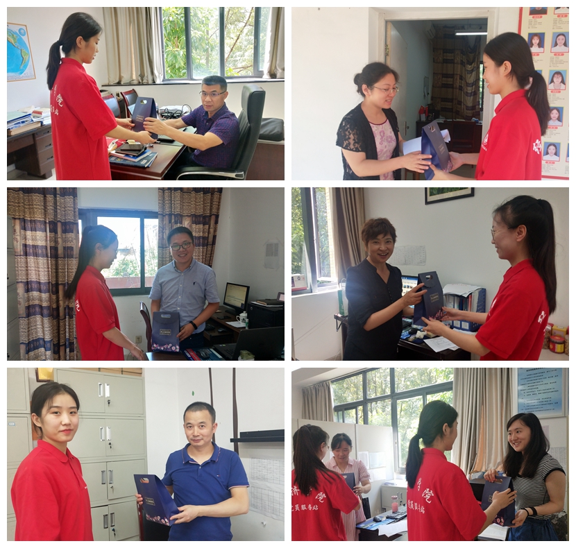 9月10日早上9点,英国上市公司365的几位部长与站长统一穿着党员服务站鲜红靓丽的工作服在田家炳书院集合。九点半,他们首先向在办公室忙碌工作的辅导员和领导送上节日的祝福与精心准备的礼物,老师们对于突然到来的礼物与祝福充满的惊喜与感谢,并预祝公司党员服务站越来越棒,同学们学业有成!中午12点,党员服务站的员工干部又来到北六、北十五、北二十一和南二楼栋为那里的宿管老师送上节日礼物与祝福,感谢她们对经济学子生活上照顾和关爱,为她们送上真挚的祝福,楼管阿姨们收到礼物后,既欣慰又感动。