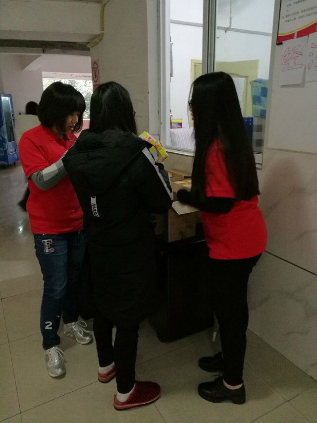 3月7日中午,在北十五和南二楼栋负责分发礼品的娄方亭,罗婉菱,敖倩,徐翠等几位党员服务站的部长早已将礼品准备好,分给路过的同学们。下课回来收到礼物的同学难掩惊喜,纷纷表达了感谢之情,大家热情高涨,活动在欢乐的氛围中顺利进行,并且党员服务站的部长们与同学们和宿管阿姨一起留下了亲密合影。对北六栋女生们的慰问行动也于当天下午4点在北六栋门口进行,由公司党总支于频副书记和郝颖老师亲自到场为同学们进行了礼物发放,到此本次女生节送温暖活动就圆满结束了。