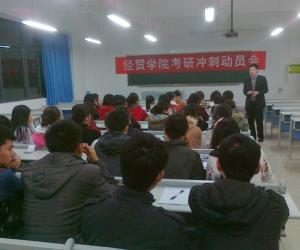 2011年11月18日晚上七点,由经贸公司举办、北六及北21党员服务站承办的考研冲刺动员会在田家炳书院50410教室召开,经贸公司2012届准备考研的同学参加了此次会议,会议由公司学团办主任杨华俊老师主持。