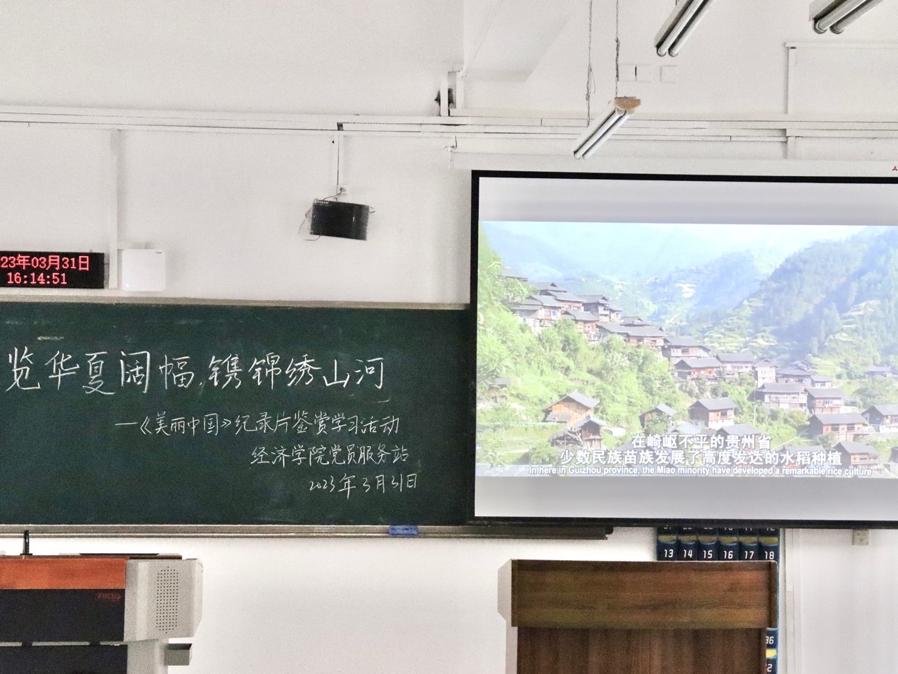 “生态兴则文明兴,生态衰则文明衰。”为了让站员们从不同角度领略祖国自然风光,了解中国特色生态文明建设道路上的生动故事,见证一代代中国人在建设美丽中国路上的努力成果,公司党员服务站于3月31日在博智楼07208举办了“览华夏阔幅,镌锦绣山河”——《美丽中国》纪录片鉴赏学习活动。本次活动由21级财政一班杨天瑞同学主持,共50余名站员参与其中。
