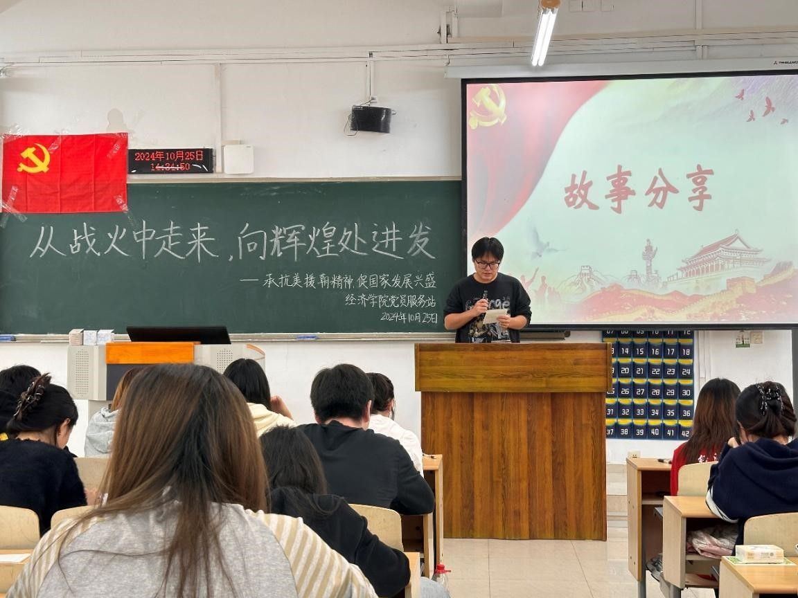 2024年10月25日,是第74个抗美援朝战争纪念日。74年前,中国人民志愿军高举保卫和平、反抗侵略的正义旗帜,同朝鲜人民军一道浴血奋战,赢得抗美援朝战争的伟大胜利。为缅怀革命先烈,传承伟大抗美援朝精神,公司党员服务站特此举办“从战火中走来,向辉煌处进发”——承抗美援朝精神,促国家发展兴盛政治学习主题活动。本次活动共80余名站员参加,由2023级财政一班田梦婷同学主持。