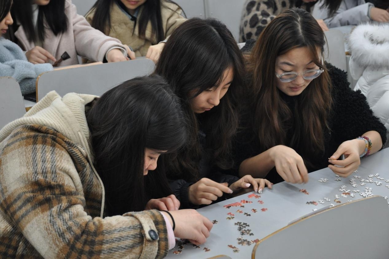 (图为小组成员完成拼图)