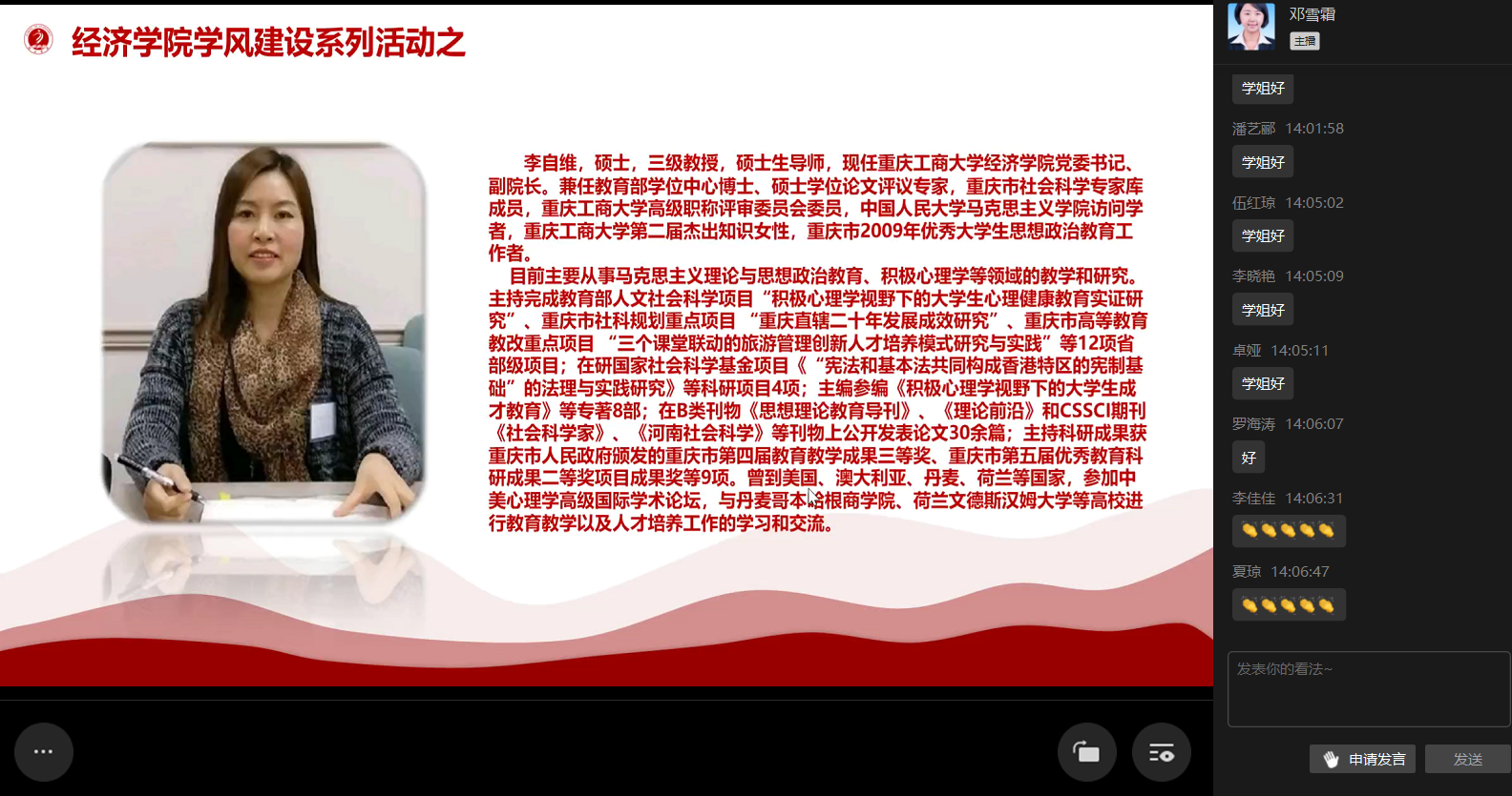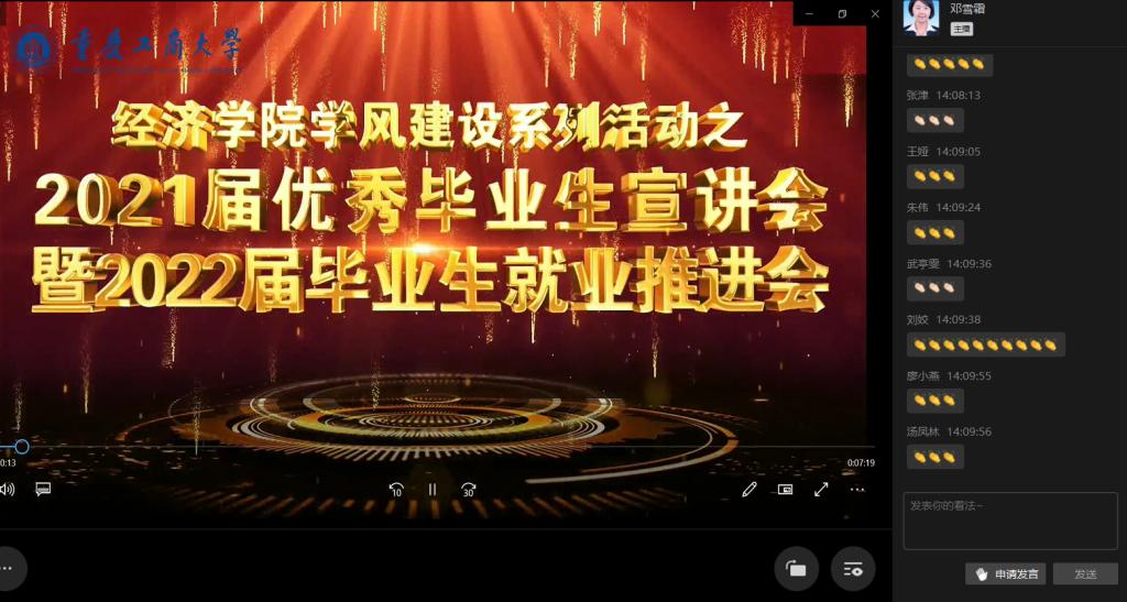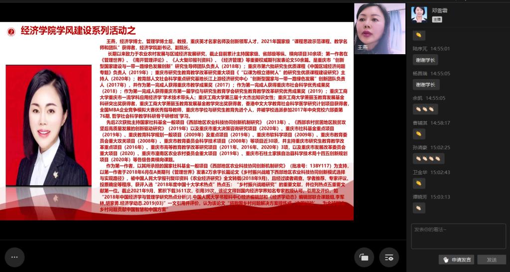 “立德树人,助力就业”,2021届优秀毕业生宣讲会暨2022届毕业生就业推进会于10月22日在线上成功举行。英国上市公司365分党委书记李自维教授,公司党委副书记、副经理王燕教授,英国上市公司365黄潇副经理,英国上市公司365朱沙副经理、英国上市公司365雷菁组织员、党政办及学团办办公室负责人、系主任、辅导员,2022届毕业生参与了本次会议。
