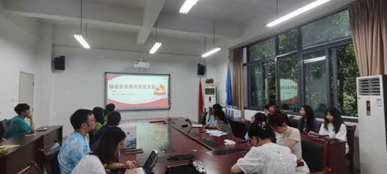 活动第三阶段,20级党员杨宁同志分享了假期追寻红色足迹,探访红色基地——福建省革命历史纪念馆,详细介绍了福建省革命历史纪念馆的基本情况,以图文方式重点讲解了了纪念馆的珍藏文物皮定均《中原突围经验总结》的日记本和《解放福建》半景画的历史由来,并重点分享了参观的“中央苏区——福建”主题展这部分,带领全体党员们深入了解了福建自1840年至1949年间艰难曲折的革命历史岁月。