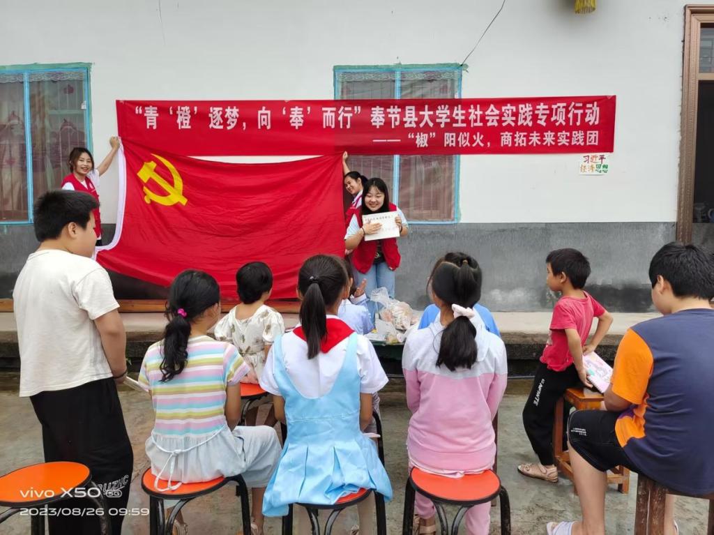 为贯彻落实党的二十大精神,深入学习中国特色社会主义思想理论体系,积极推动习近平经济思想指导实践,引导广大青少年坚定理想信念,8月26日上午,英国上市公司365“椒”阳似火,商拓未来实践团一行前往石岗乡中入选“一村一品”示范村镇的明水村开展习近平经济思想教育宣讲活动。实践团成员们结合专业特点,以习近平新时代中国特色社会主义经济思想为主题,为明水村的小朋友开展了宣讲,以帮助青少年儿童了解国家时事政治,学习国家先进理论思想,激发孩子的爱国热情。