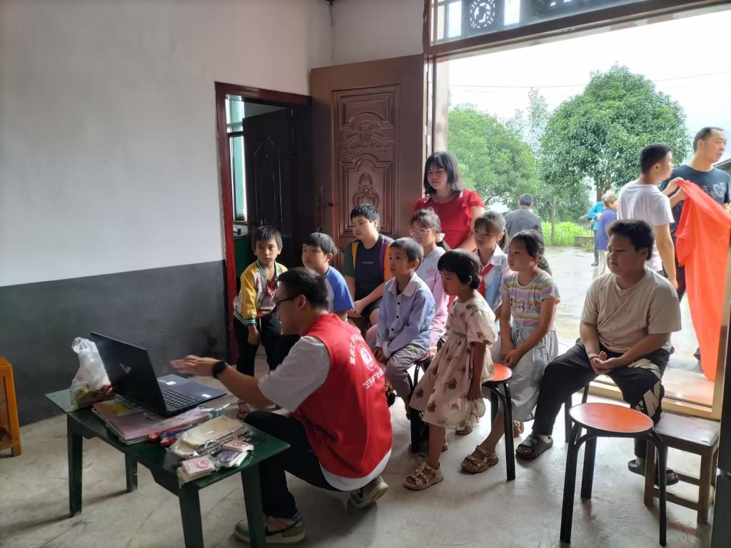 上午10时,实践团抵达明水村,在明水村村支书的带领下,前往农户家中开展教育宣讲活动。考虑到近年来新发展理念和乡村振兴战略在两会上被多次提及,实践团重点围绕这两个板块进行展开。待小朋友聚集后,实践团成员李新悦先以国内外经典经济学故事吸引小朋友们的眼球,再在其中穿插习近平经济思想的九个要点,后以日本排放核污水事件为例,分析了核污水对全球环境的恶劣影响,展示了受到核污染的海洋现状和变异生物等案例,从而强调了兼顾发展与环保的重要性,继而引出了新发展理念这一重要思想,并重点解读了“绿水青山就是金山银山”这一重要发展观点。