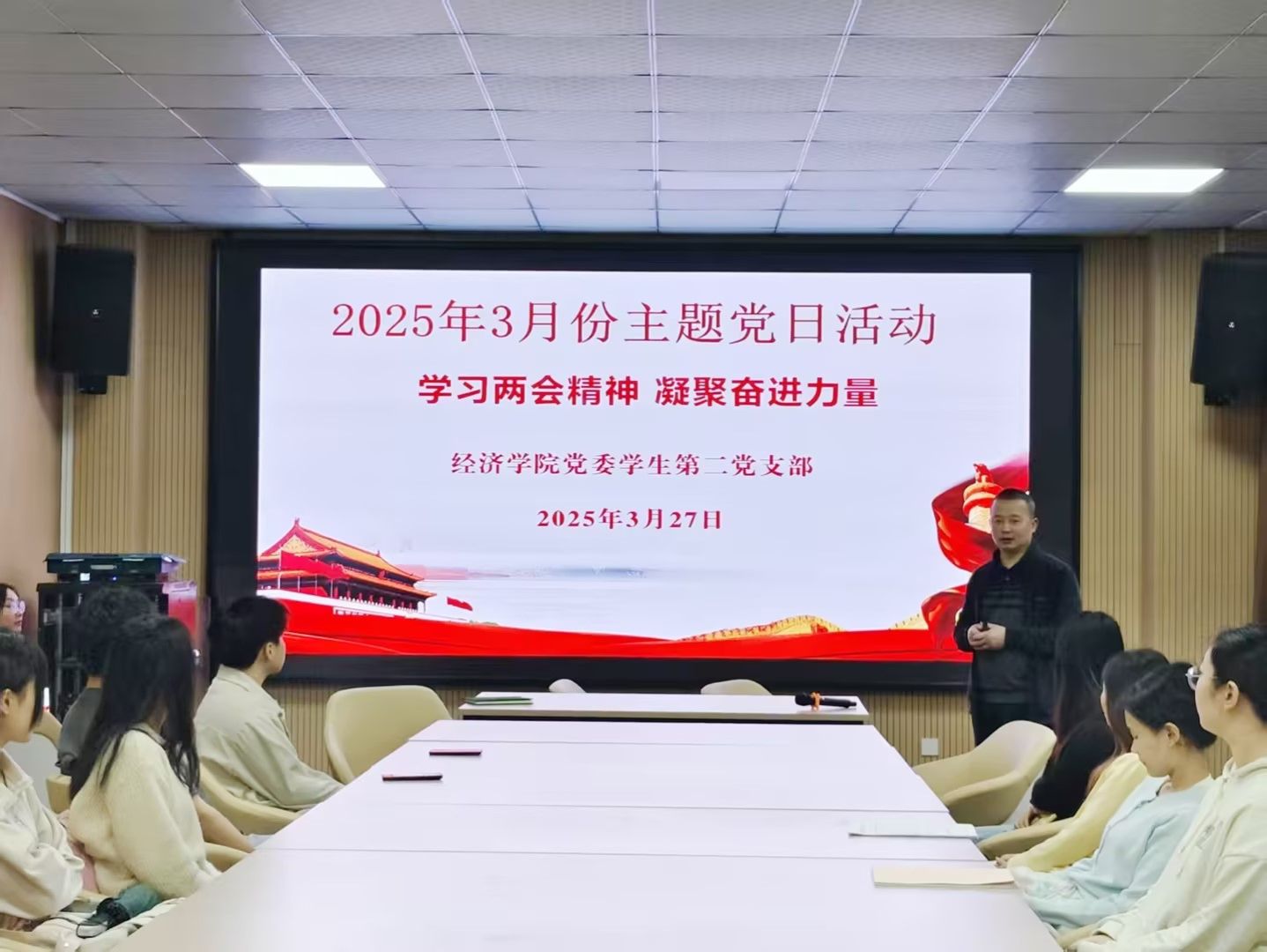 首先,支部书记喻智成对习近平总书记关于党的建设的重要思想概论中坚持和加强党的全面领导,两会精神中政府工作报告展开领学。随后,各党小组坚持落实“第一议题”制度,依次展开自己的领学内容。21贸经一班学习小组领学习近平总书记在听取吉林省委和省政府工作汇报时重要讲话精神;21贸经二班学习小组领学习近平总书记重要文章《健全全面从严治党体系》;21贸经三班学习小组领学习近平总书记在民营企业座谈会上的重要讲话精神;22贸经一班学习小组领学习近平总书记在二十届中共中央政治局第十九次集体学习时的重要讲话精神;22贸经二班学习小组领学中共中央国务院印发《教育强国建设规划纲要(2024-2035)》;22贸经三班学习小组领学市委、市政府印发《重庆加快建设教育强市推进教育现代化规划(2024-205)》。学习小组其他成员就部分学习内容展开了心得体会交流。