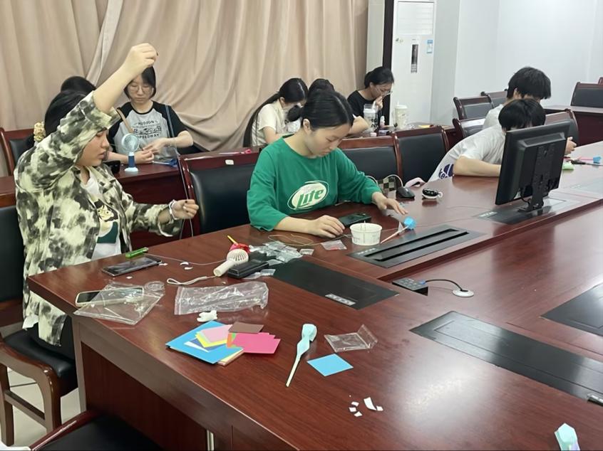 活动初期,心理工作站成员为参与员工分发手工制作材料,同学们根据工作人员的示范和视频教程,有条不絮开始了“沉浸式”手链编制和手工折纸。心理工作站成员们细心指导,主动与同学们交流引导其在手工制作中学会减压放松、缓解不良情绪。经过一下午的努力,一件件花艺作品,一条条精致的手链逐渐完工,作品汇聚了同学们对美好生活的感悟。活动结束后,同学们纷纷为此次活动点赞表示收获了满满的成就感和幸福感,希望今后可以多举办多参加此类有意义的活动,释放自身压力。