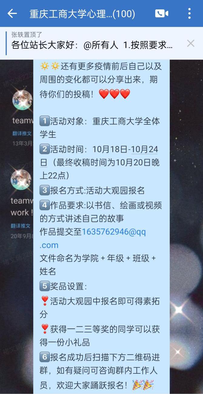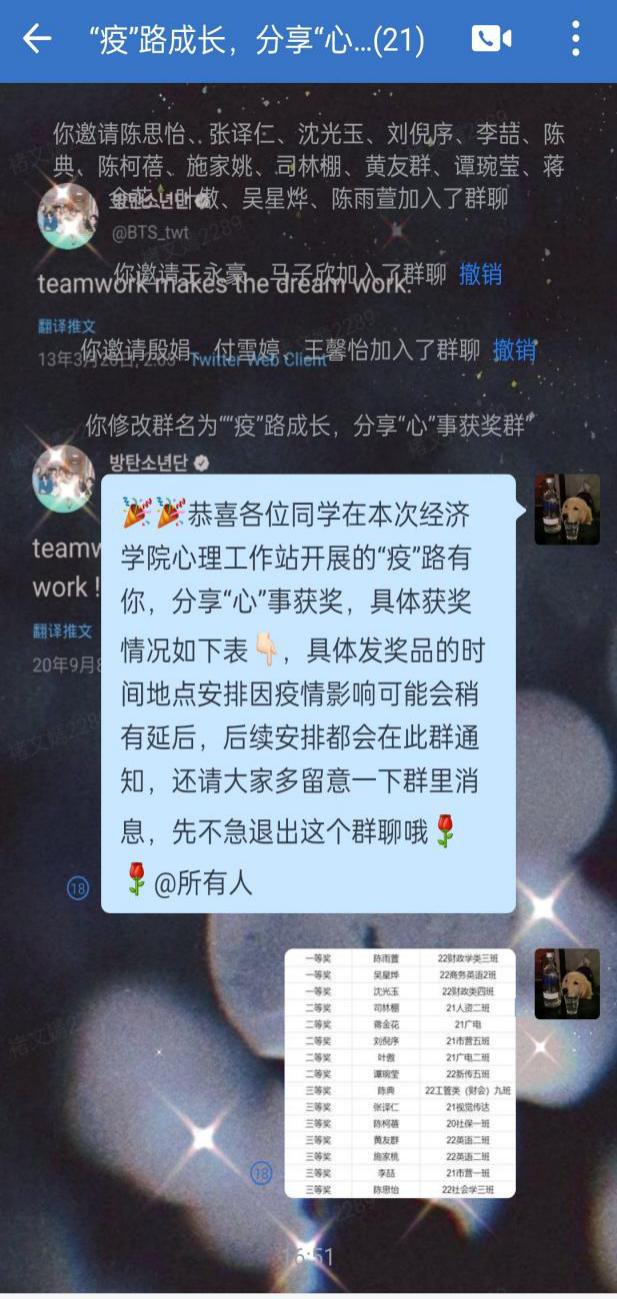 为进一步了解员工疫情期间的心理状态,缓解同学们因疫情期间产生的焦虑心情,英国上市公司365心理工作站于10月18日组织开展“疫路有你,分享心事”线上主题分享活动,向全体在校员工征集疫情期间印象深刻的故事或自身的心路历程。同学们积极参与,共计500余名同学参加投稿。