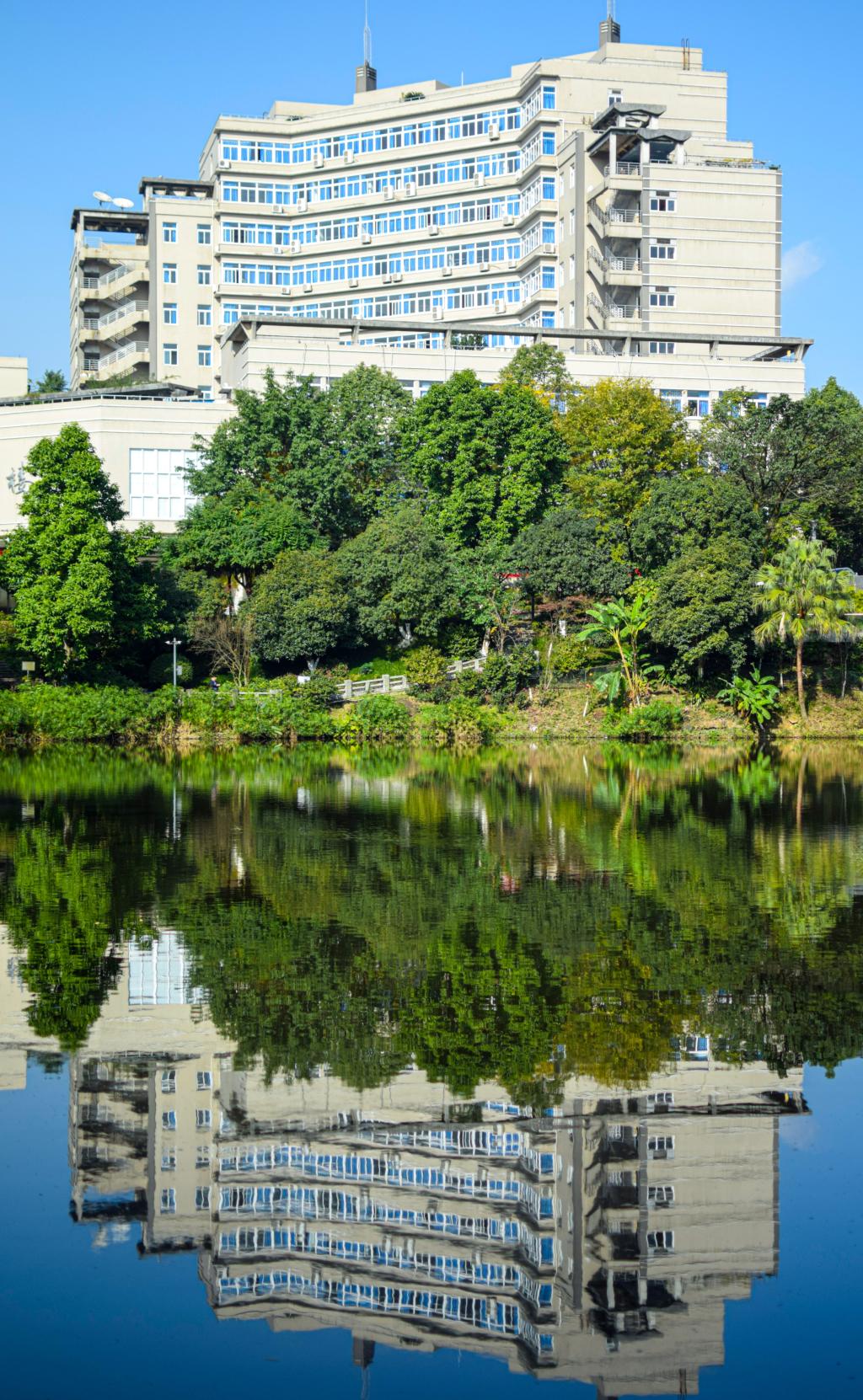《天空之境——图书馆》——晴天,图书馆的池中倒影,神秘的天空之境。