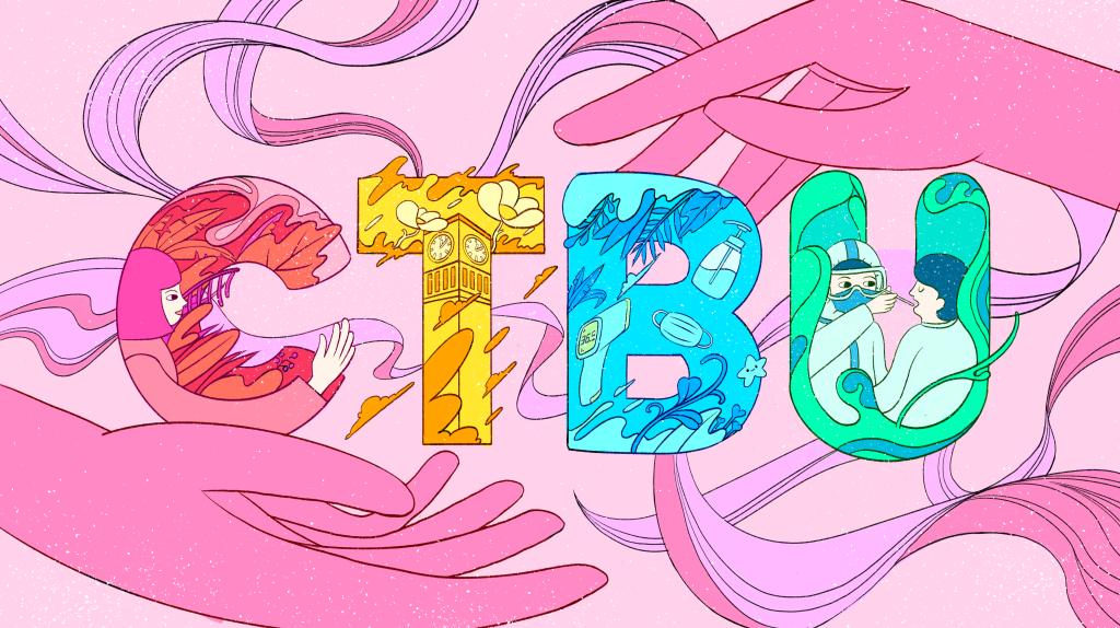 疫情当下我们要做好防控,静待花开。C表达终有一天我们可以战胜疫情,拥抱青春;T为重工商标志建筑钟楼;B表示工商学子有每日体温自查、戴口罩、勤洗手的防疫措施,做好自身防护;U则是高新区爆发疫情后,医护人员为我们做核酸检测的场景,为我们的人身安全提供进一步的保障。相信我们重工商学子可以战胜疫情,共赏春光!