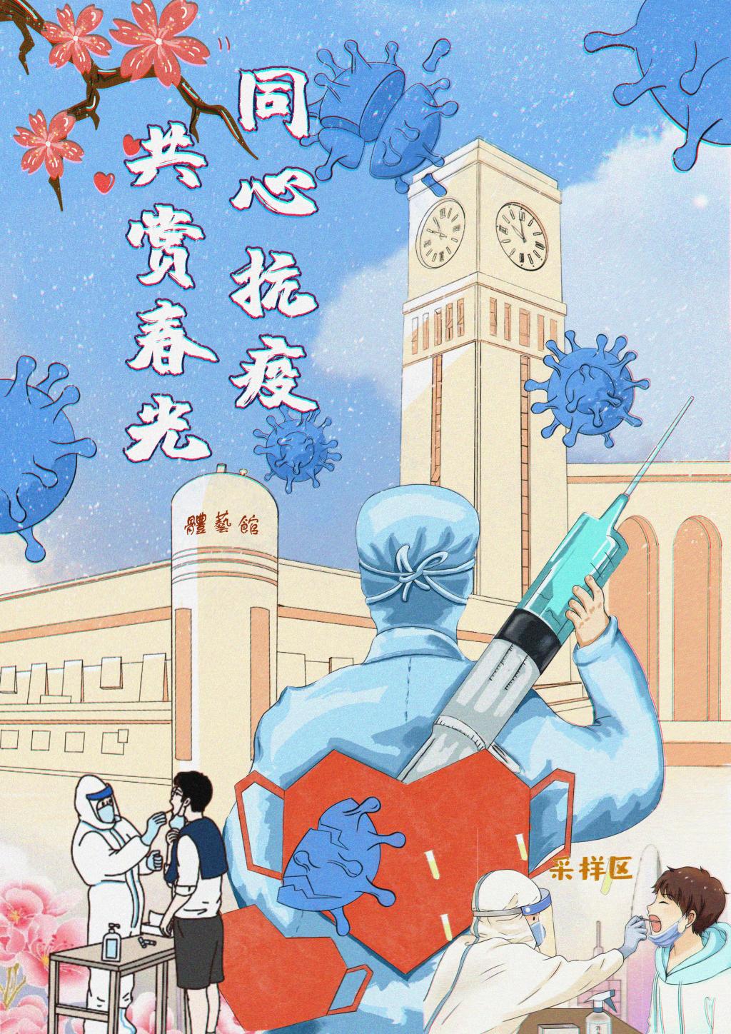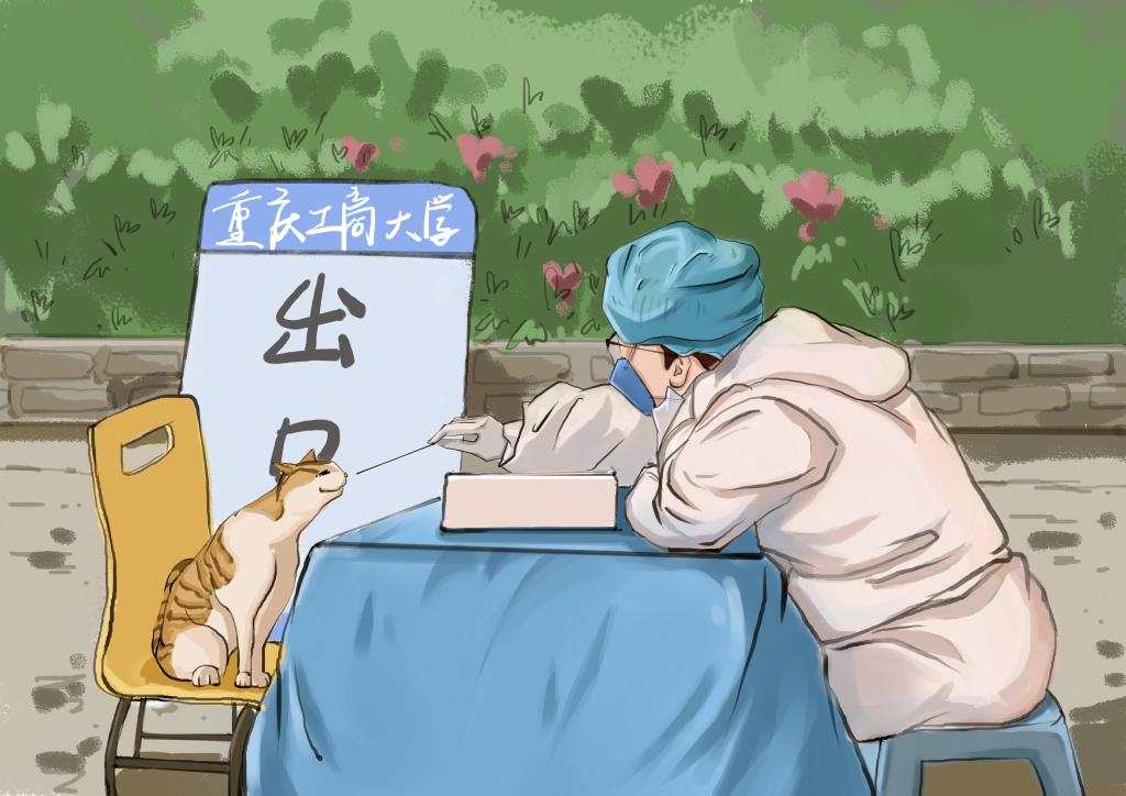 灵感来源于因三月十二日重庆高新区发现的新冠疫情的出现,导致多个高效封闭式管理,在校期间,公司统一做了核酸检测。在排队做核酸的时候,脑子浮现出统一在住校体艺馆做核酸的场景,这都是我们和病毒在作斗争,我们在决胜病毒的每一个瞬间。相信工商能早日决胜疫情,共赏春光!