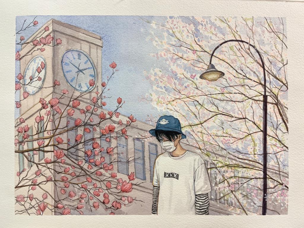 优秀奖作品——《疫情下的校园温情》 投稿人:20环境设计三班 孙宇星