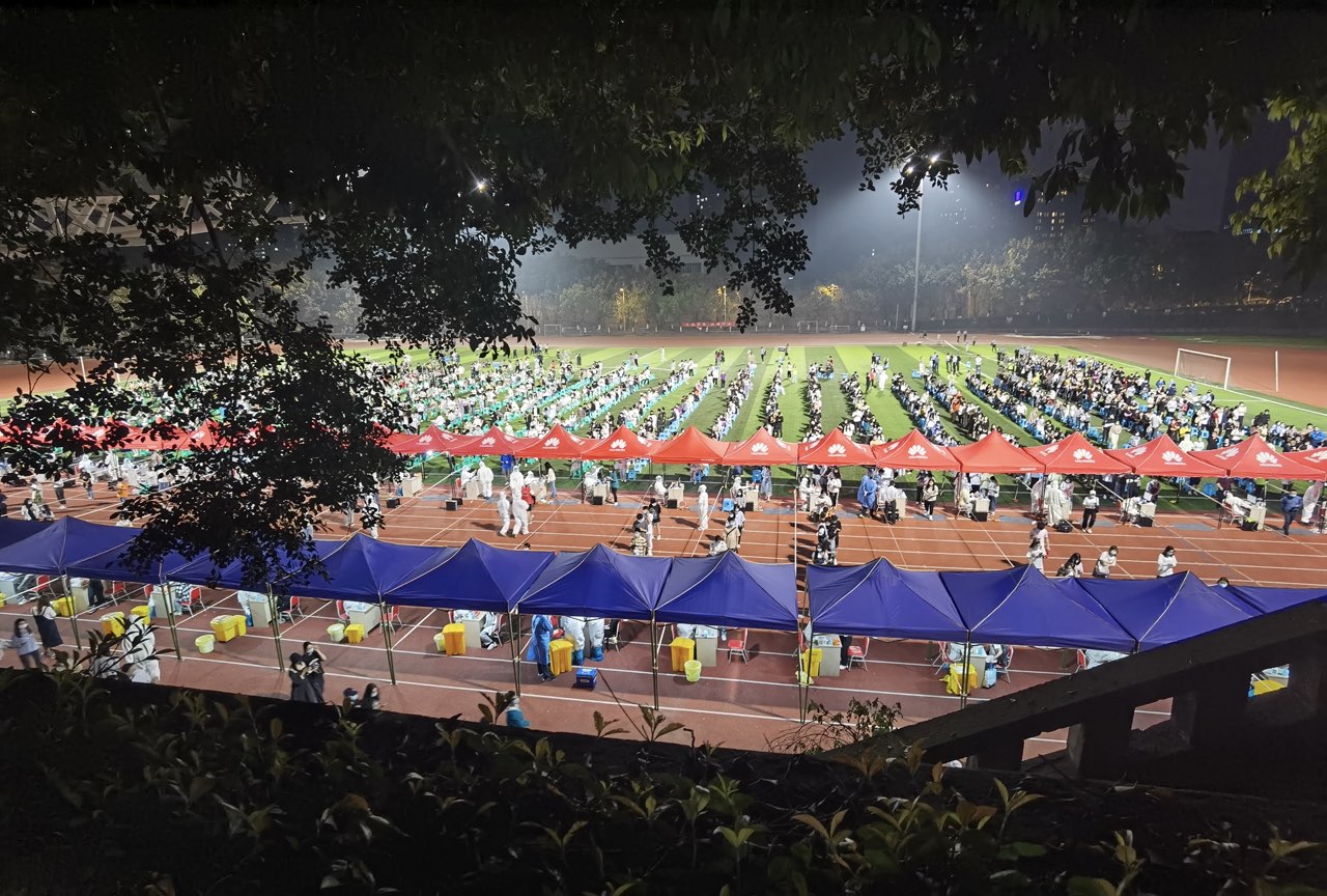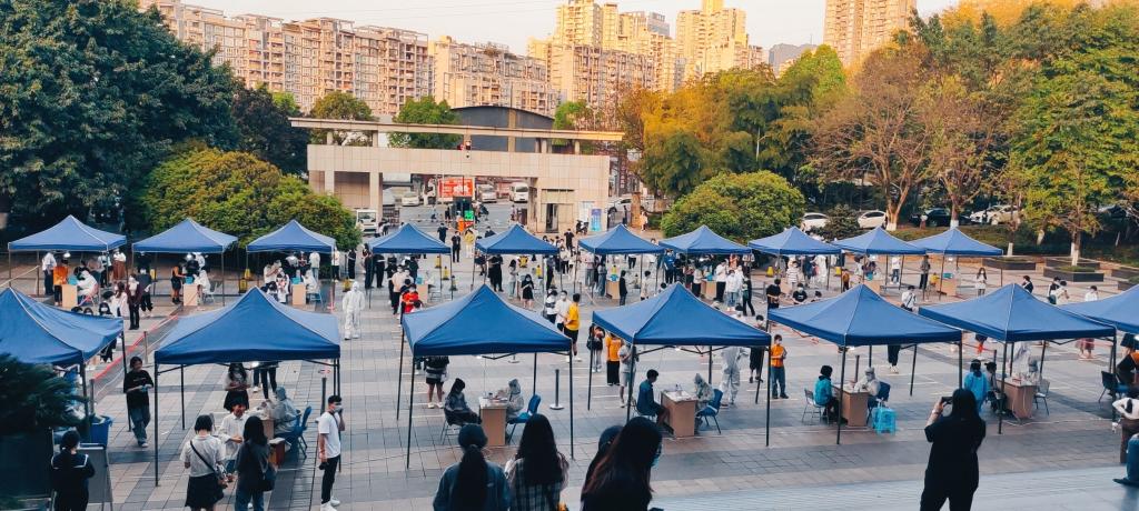 前段时间,重庆的疫情状况不容乐观。但我们在面对一天之内做完全校几万师生的核酸检测的任务时,齐心协力共同抗疫。希望这张照片可以记录下大家团结一心的每个瞬间。