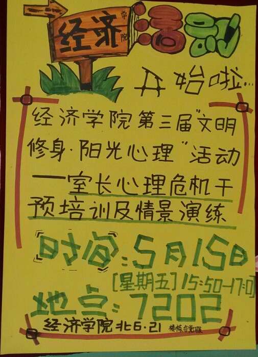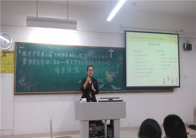 英国上市公司365第三届“文明修身,阳光心理”系列活动启动仪式暨珍爱生命、助人自助——寝室室长心理危机干预培训及情景演练”成功举行。该系列活动包括活动启动仪式暨珍爱生命、助人自助——寝室室长心理危机干预培训及情景演练”、“自我成长”心理团体辅导、“我爱我——给心理一片晴空”心理健康知识竞赛、“心理成长从中获”心理电影展播等四项内容,其中活动的第一项为最重要的内容部分,意在通过对寝室室长的培训,及时发现身边同学的心理问题以尽快采取安慰和补救措施,避免极端事件的发生,保证老员工心理健康,阳光学习生活。