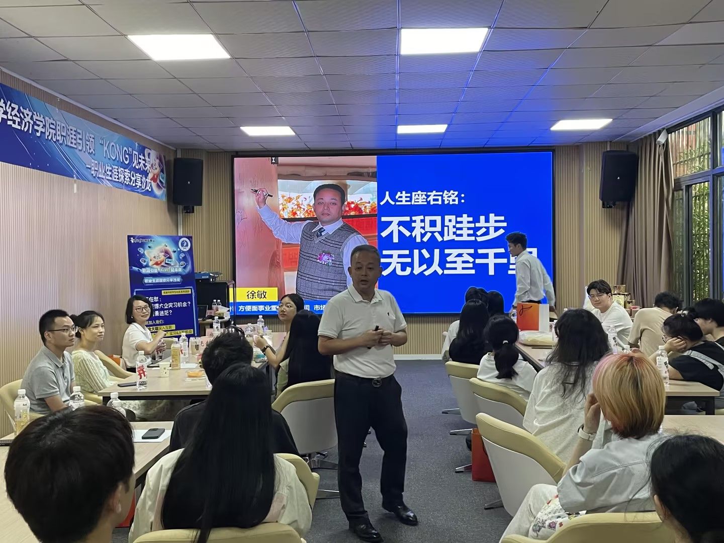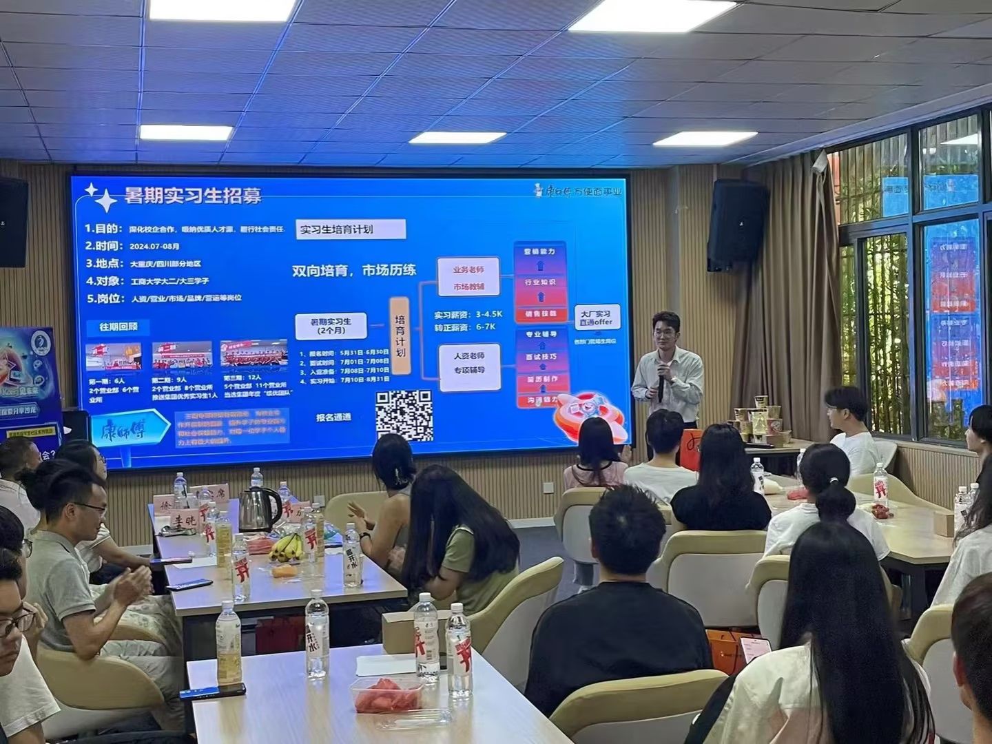 为进一步推动公司产学研深度融合,帮助同学们认清就业形势,提早做好职业生涯规划,2024年5月31日,第二期田家炳书院产学研论坛“职涯引领,KONG见未来--职业生涯探索分享沙龙”活动于田家炳102多媒体会议厅举行。康师傅方便面重庆行销公司人资处李晓静经理、重庆康师傅方便面行销公司市品处徐敏经理、康师傅方便面重庆行销公司相关工作人员、公司党委副书记白海龙和就业联络负责人喻智成、各公司各年级各专业员工参加本次活动。活动由康师傅人力资源部李生洋主持。
