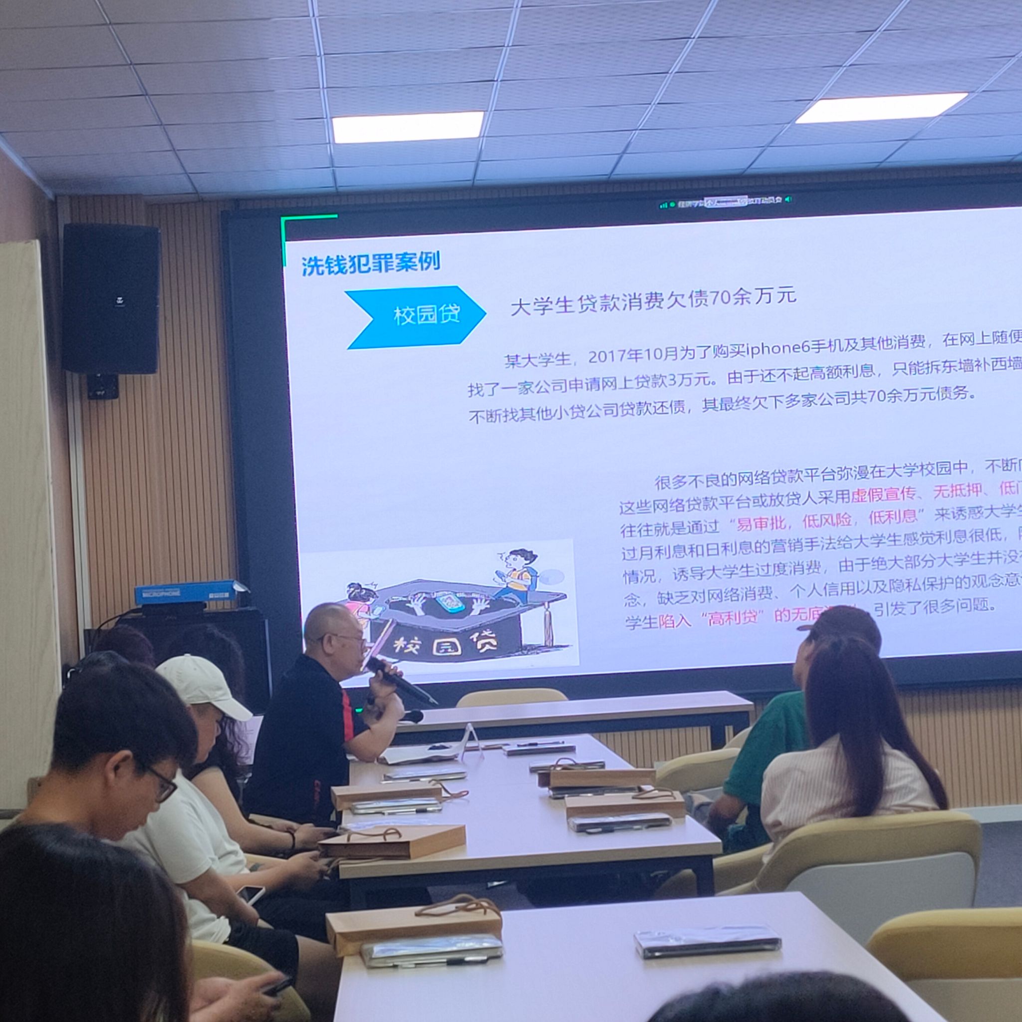 申万宏源证券重庆分公司高级客户经理周宇浩详细讲解了国家开发银行的生源地贷款还款须知和还款操作方法,提醒毕业生们及时在系统中更新自己的个人信息,并以阿里巴巴的蚂蚁信用为例,介绍了整个互联网征信体系。周宇浩经理提醒大家一定要珍惜自己的征信记录。营业部合规风控周立经理以20岁老员工出租银行卡“洗钱”上百万元,最终承受牢狱之灾为例,从个人、社会、国家三个方面讲解了洗钱的危害和手段,并以某老员工在网上申请贷款3万用于苹果手机的购买以及其他消费,因无法偿还高额利润,拆东墙补西墙,不断以贷养贷,最终欠下70多万的债款,提醒同学们远离校园贷。