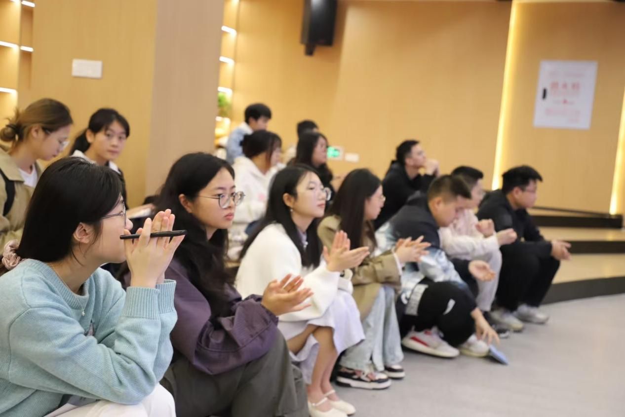 团中央中国青年创业导师张庆朋分享了其在创业道路上的宝贵经验,从“创业宏观环境分析能力”“细分问题分析与决策”“产品定位与技术创新”“战略制定与商业模式设计”“如何判断好项目”五个话题出发,为在座的同学们提供了多维度且富有洞见的视角。2023级经济学2班张浩斓同学作为员工创业代表分享了“云守艺——家乡非遗文化传承与发展工作室”项目,展示了以线上线下活动和产品销售形式对非遗文化的保护、传承和创新发展。